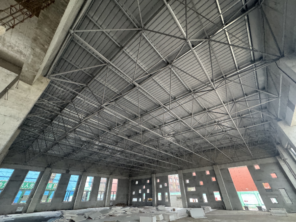本工程為陜西未來能源化工有限公司金雞灘煤礦5#宿舍樓和文體活動中心項目-文體活動中心鋼網架項目,文體活動中心網架軸線尺寸80m*30m網架軸線投影面積2400㎡,多功能廳網架軸線尺寸24m*29m網架軸線投影面積696㎡,建設地點為陜西省榆林市榆陽區金雞灘鎮,結構使用年限50年。采用螺栓球節點正放四角錐網架結構形式,平板網架結構,下弦支撐形式,文體活動中心跨度方向兩側均計12個支撐點,長度方向計12軸,邊側位置設置3個支撐點;多功能廳跨度方向兩側均計5個支撐點,長度方向計5軸,邊側位置設置3個支撐點。