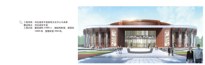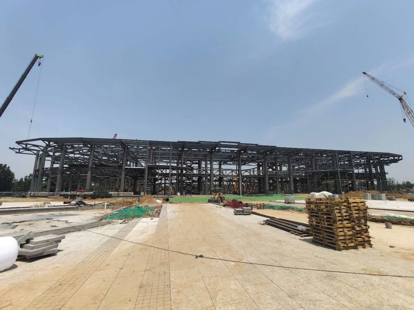 建筑面積37900平方米,鋼結構、箱型柱10000噸、圓管桁架2000噸,該項目2200噸桁架屋面結構完成一次性整體提升。