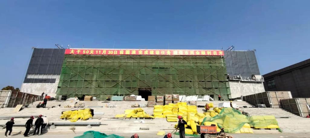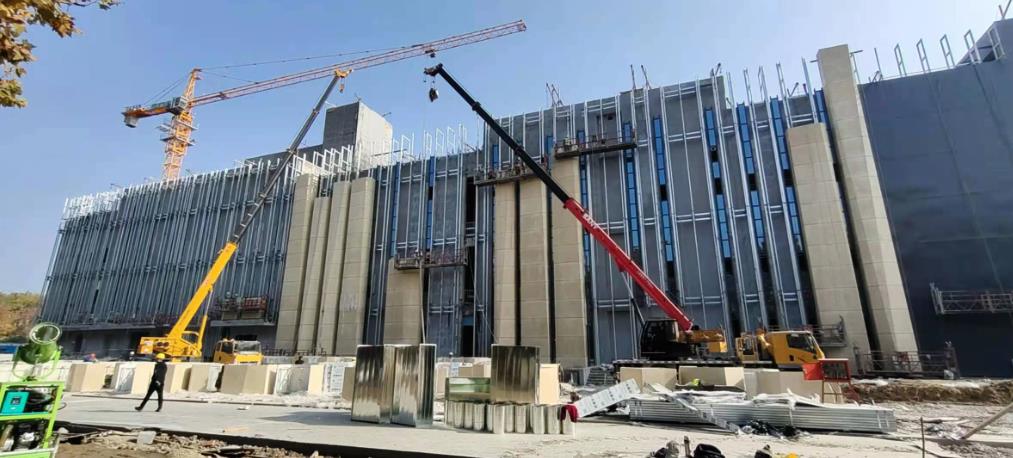 該項(xiàng)目為濟(jì)寧重點(diǎn)工程,外裝飾裝修部分共計(jì)19200平方米,造型新穎,工藝復(fù)雜,外裝飾部分為背栓式石材、干掛式混凝土藝術(shù)板,兩種新材料均在濟(jì)寧地區(qū)首用;在工期緊、施工難度大的情況下,僅用50天便完成了施工內(nèi)容。