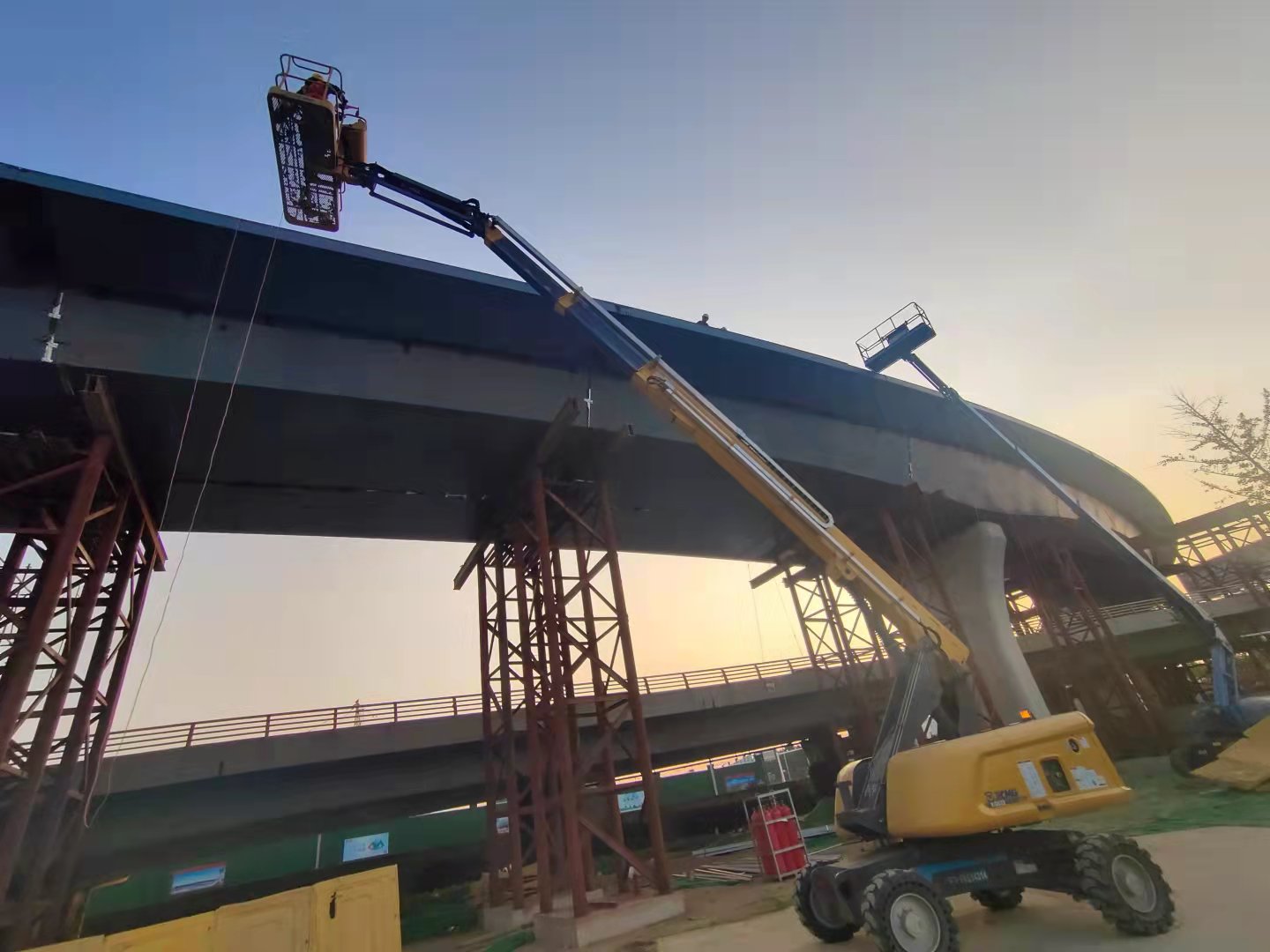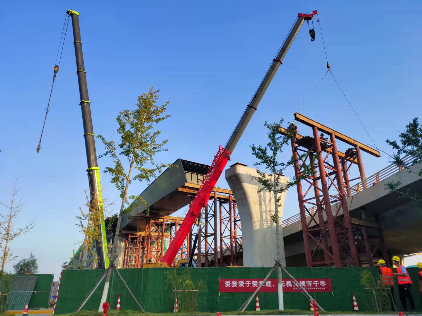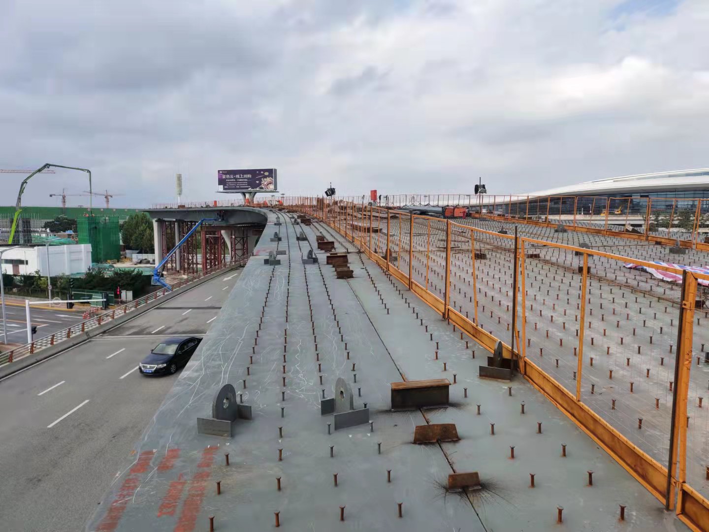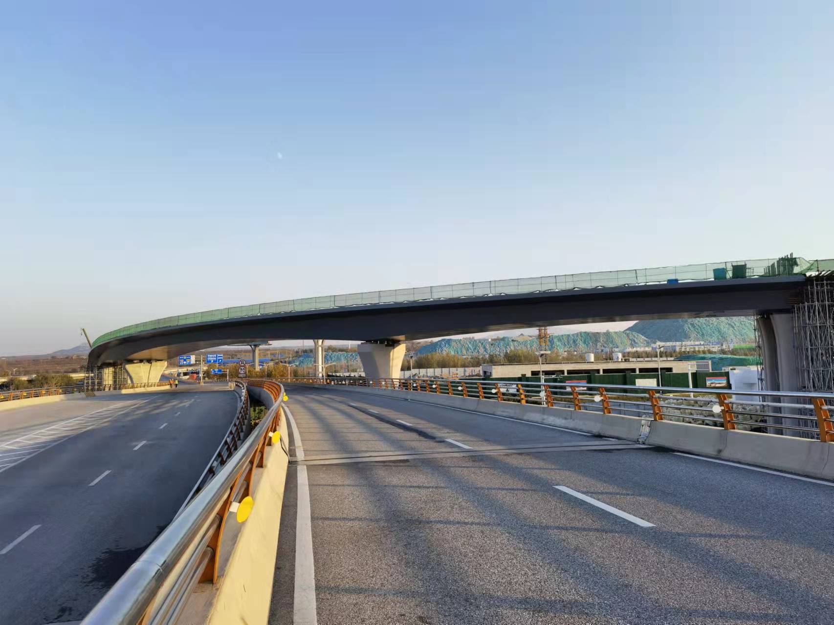 橋梁工程是煙臺(tái)蓬萊機(jī)場(chǎng)二期擴(kuò)建工程的重要組成部分,也是整個(gè)項(xiàng)目的重要控制性工程。根據(jù)總體方案高架橋梁(G線)南起現(xiàn)狀T1進(jìn)場(chǎng)高架處,沿T1高架向北跨過空港二路,與T1連接匝道(A線)合并,向西跨過迎賓九路、迎賓十路后到達(dá)T2航站樓,終點(diǎn)在航站樓西側(cè)向南轉(zhuǎn)彎后落地接地面出場(chǎng)道路,高架主線 (G線)總長(zhǎng)度1635.104m。跨度為37米+62米+37米=136米,橋梁面積18565平方米,總用鋼量1300噸。