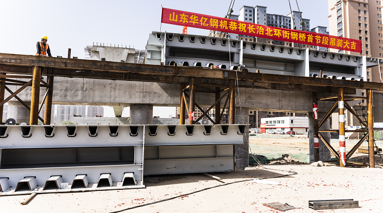 該工程榮獲山東省鋼結(jié)構(gòu)金獎(jiǎng)。工程內(nèi)容:鋼箱橋梁制作、安裝,主橋采用鋼箱梁,鋼橋梁跨徑為40米+65米+40米=145米,總用鋼量2200噸。