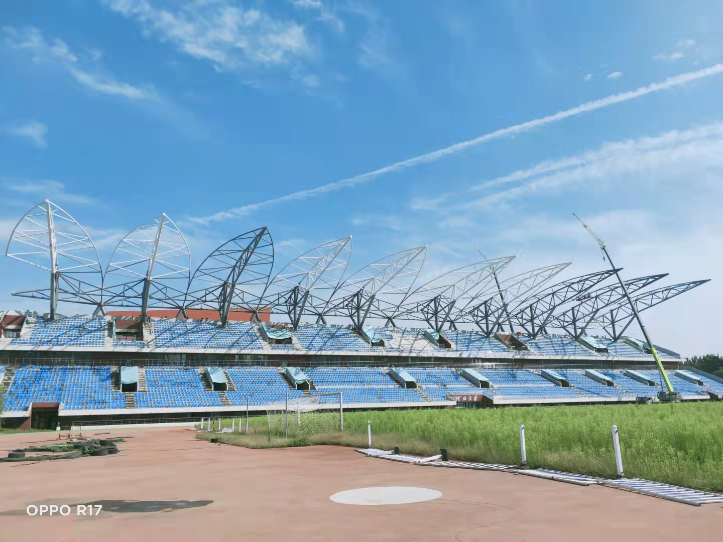 看臺鋼結構總計1950噸,看臺罩膜結構15000平方米。