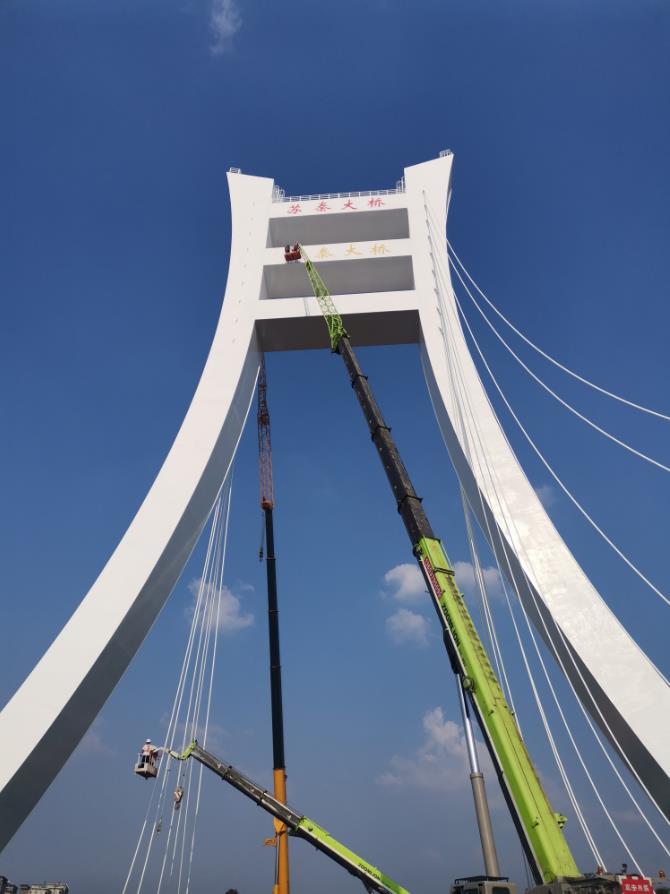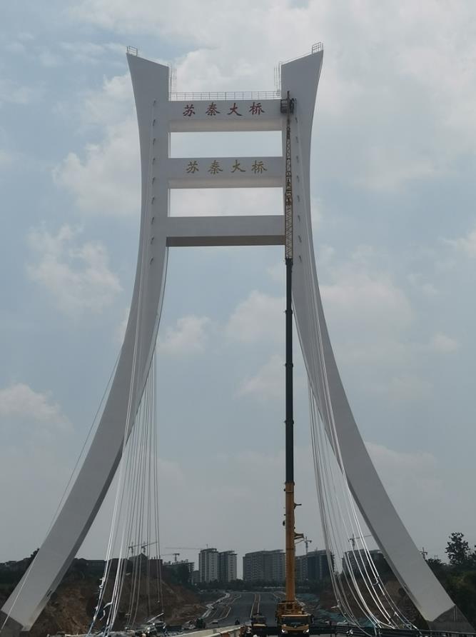 鋼橋橋塔制作、安裝,總用鋼量870噸。