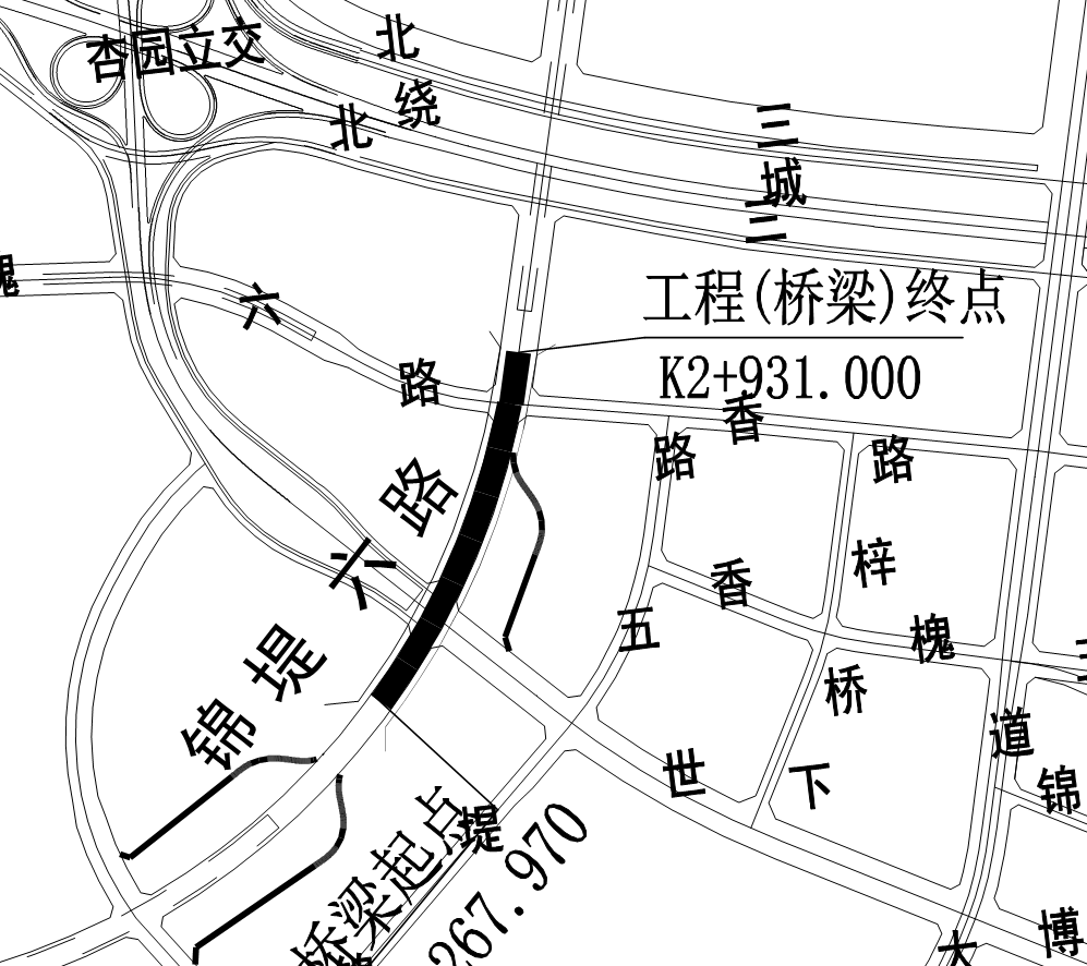 我方承建的二標段西起灞河東路以東,東至香槐六路,主線總長1331m,起訖樁號為K1+600~K2+931,其中隧道道段總長223m,U型槽217m,橋梁段總長為672m。