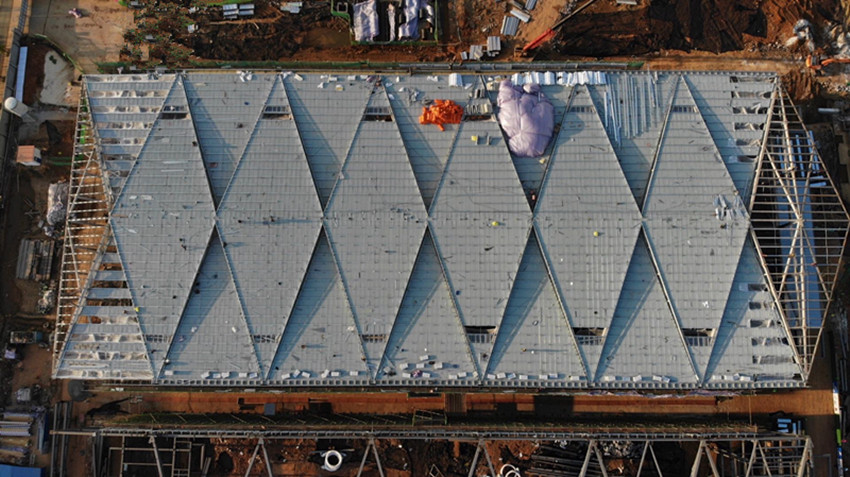 項目主體工程采用鋼結構裝配化施工,全部采用原廠加工,現場拼接,相對傳統項目,能夠節約40%的人力資源,同時,也更加綠色環保,幾乎沒有揚塵和噪音污染。