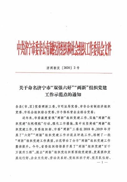 近日,我公司黨支部被濟(jì)寧市委組織部授予“雙強(qiáng)六好”“兩新”組織示范點(diǎn),這是在繼2020年7月公司黨支部書(shū)記楊鴻同志榮獲曲阜市“紅帆能手”后,華億鋼機(jī)在黨支部建設(shè)方面又獲得的一項(xiàng)濟(jì)寧市級(jí)榮譽(yù)。