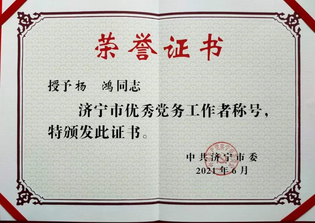 6月30日上午,濟(jì)寧市優(yōu)秀共產(chǎn)黨員、優(yōu)秀黨務(wù)工作者和先進(jìn)基層黨組織表彰大會(huì)在我公司承包施工幕墻項(xiàng)目的濟(jì)寧市圣都會(huì)議中心召開(kāi),公司黨支部書(shū)記楊鴻同志獲“濟(jì)寧市優(yōu)秀黨務(wù)工作者”榮譽(yù)稱號(hào),這是繼黨支部書(shū)記楊鴻同志榮獲曲阜市“紅帆能手”和被濟(jì)寧市委組織部授予“雙強(qiáng)六好”“兩新”組織示范點(diǎn)之后,公司在黨支部建設(shè)方面取得的又一項(xiàng)市級(jí)榮譽(yù)。