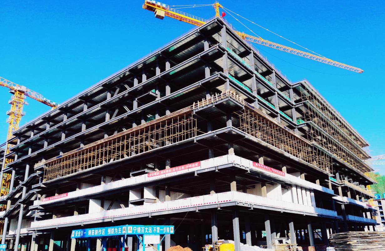淄博職業教育產教實訓基地項目是淄博市第一個全部采用裝配式建筑的大型公建類項目,本標段建筑面積為104413㎡,結構形式為鋼框架-中心支撐結構,基礎類型為筏板基礎,地基形式為天然地基。綜合樓地下二層地上七層,建筑面積84662㎡。體育館、食堂、活動中心地下一層地上三層,建筑面積19751㎡,采用裝配式鋼結構建筑,裝配率76%,達到裝配式建筑二星級標準。