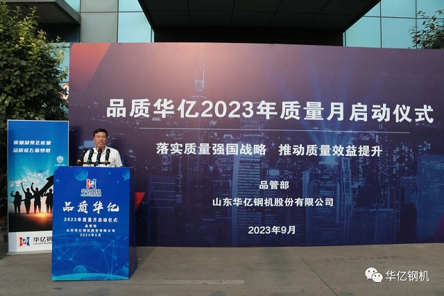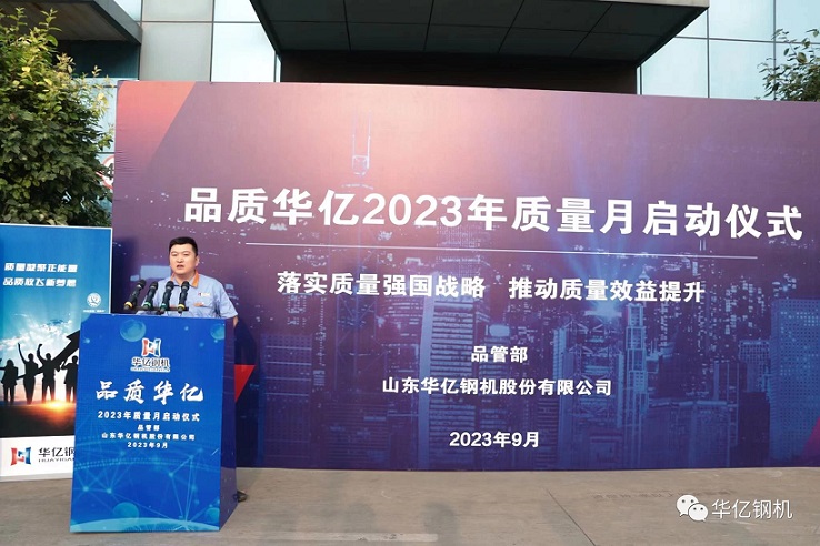 活動伊始,品管部主管侯端坤傳達了《2023山東華億鋼機“質量月”活動方案》的通知和文件精神,明確了活動期間的各項工作目標和要求,并號召全體職工積極參與到“質量月”活動中去。牢固樹立習近平總書記強調的“視質量為生命,以高質量為追求”的意識,切實做到有備無患,把質量意識牢記心中。