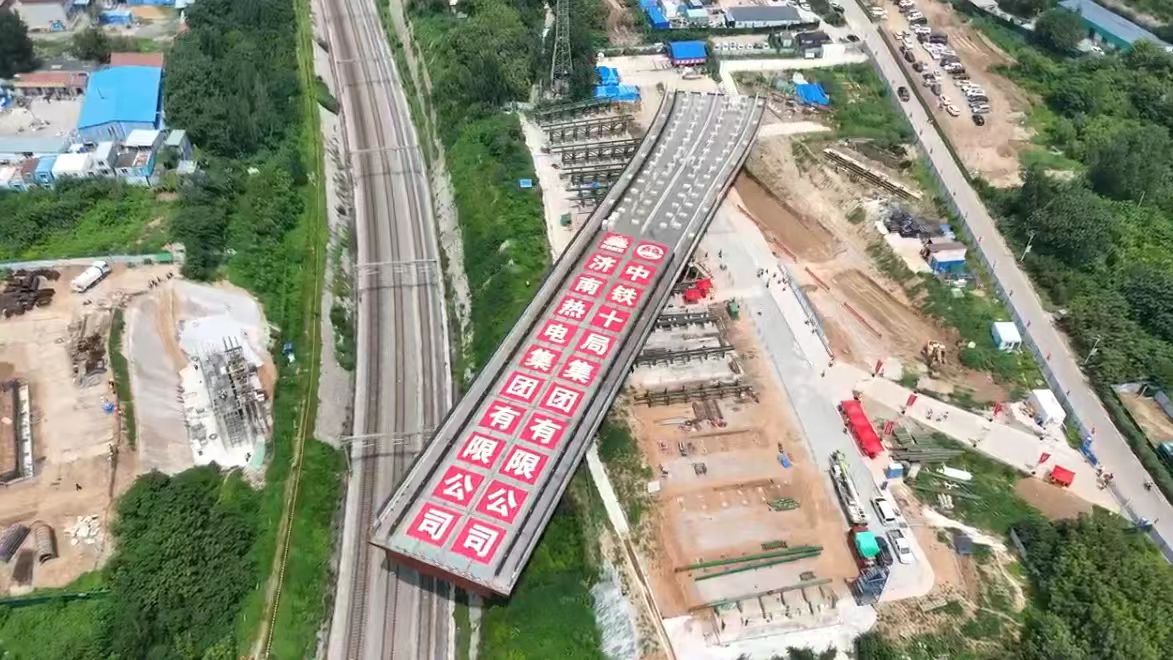 8月15日,由公司參建的濟南熱電集團進廠道路上跨京滬鐵路立交橋鋼橋順利轉體,在空中順時針旋轉74度,實現“華麗轉身”,為全線如期建成通車奠定了堅實基礎。