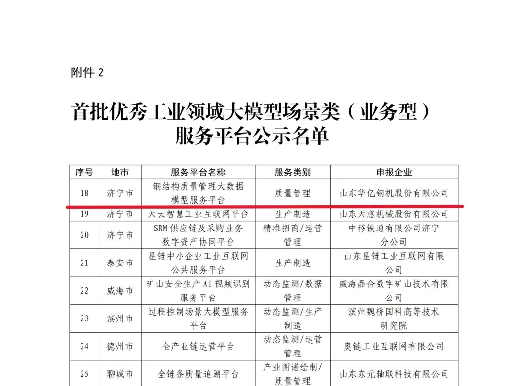 近日,山東省工業和信息化廳發布了關于首批優秀工業領域大模型服務平臺名單的公示,公司“鋼結構質量管理大數據模型服務平臺”項目成功入選首批優秀工業領域大模型場景類(業務型)服務平臺名單。