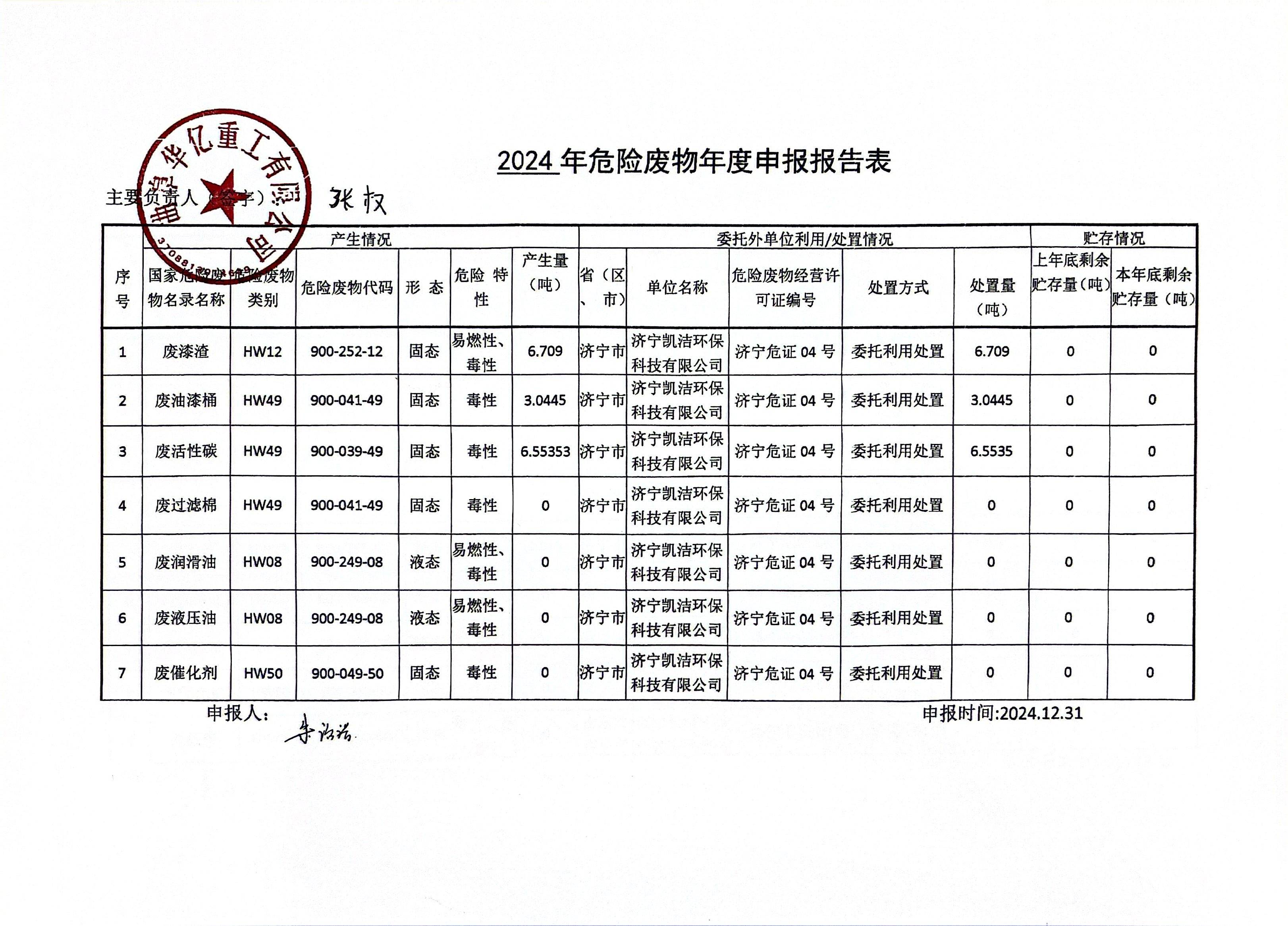 根據《中華人民共和國環境保護法》相關要求,現對曲阜華億重工有限公司2024年危險廢物產生及防治信息依法進行公示。