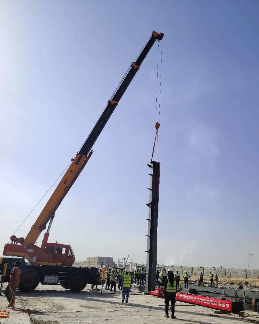 面對埃及高溫、強風沙的施工挑戰,公司團隊憑借精湛的工藝和嚴謹的工程管理,精準完成首批鋼結構的吊裝,獲得了合作方的高度認可。