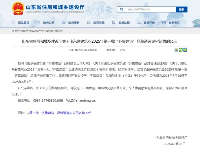 “齊魯建造”品牌遴選是山東省住房和城鄉建設廳為貫徹落實《山東省建筑業“齊魯建造”品牌建設工作方案》啟動的省級重點工程,旨在培育一批技術領先、管理規范、市場認可度高的建筑業全鏈條龍頭骨干企業。本次遴選涵蓋企業品牌、服務品牌或部品建材品牌及區域品牌四大類別,經企業自主申報、市級審核推薦、專家評審、社會公示等嚴格程序,最終從全省建筑業全產業鏈中遴選出了177家優質企業品牌。