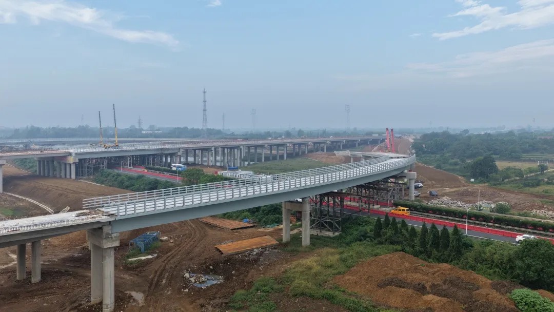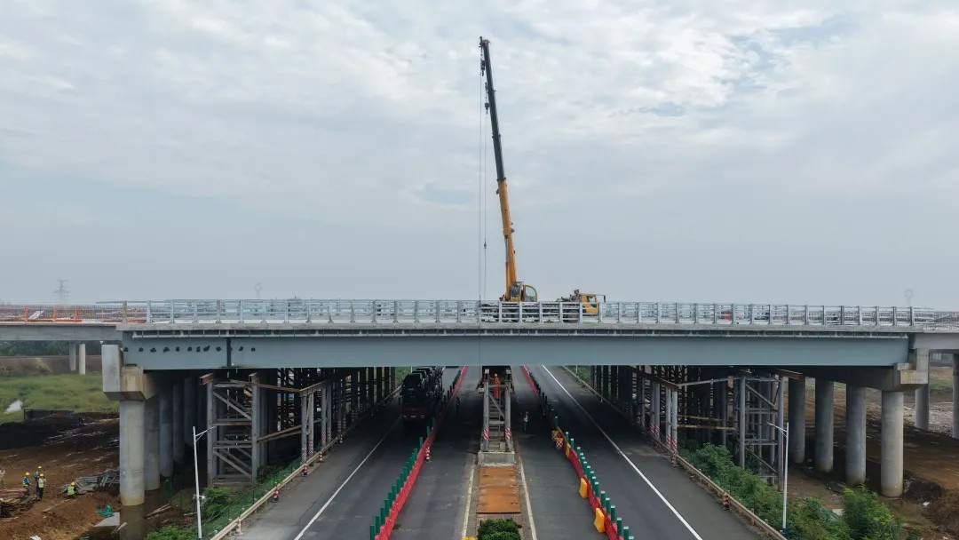 自項目啟動以來,公司高度重視,組建了經驗豐富的項目管理團隊和技術精湛的施工隊伍。面對工程量大、跨高速施工安全風險高、鋼箱梁吊裝精度控制難等挑戰,公司項目部精心組織、科學施工,確保鋼結構工程的制造精度和安裝質量,同時與各參建單位緊密配合,協同作戰,最終優質高效地完成了建設任務,為項目整體順利推進提供了有力保障。