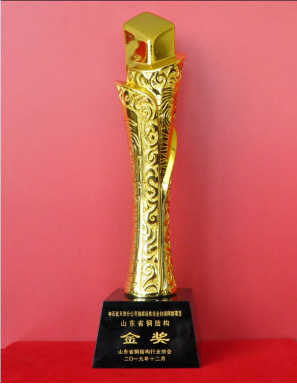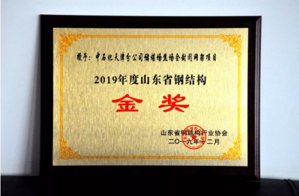 華億鋼機獲得中石化天津分公司儲煤場焦場全封閉網(wǎng)架項目-山東鋼結(jié)構(gòu)金獎。