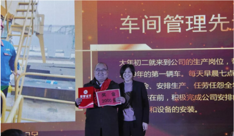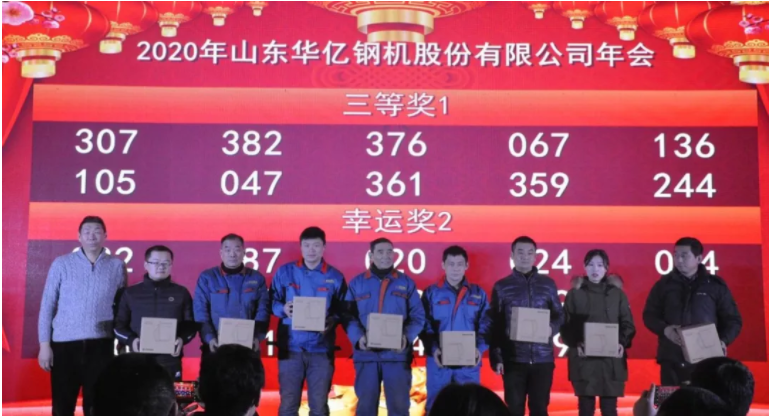1月17日(臘月二十三)上午,山東華億鋼機股份有限公司召開2019總結表彰暨2020新春年會,年會主題是“凝聚華億,筑夢遠航”。山東華億鋼機股份有限公司董事長張猛、總經理孫鵬會上作了新春致詞,會議表彰獎勵了一九年度做出突出貢獻的先進集體和先進個人,并穿插演出了精彩的員工自編自演的文藝節目及抽獎活動。