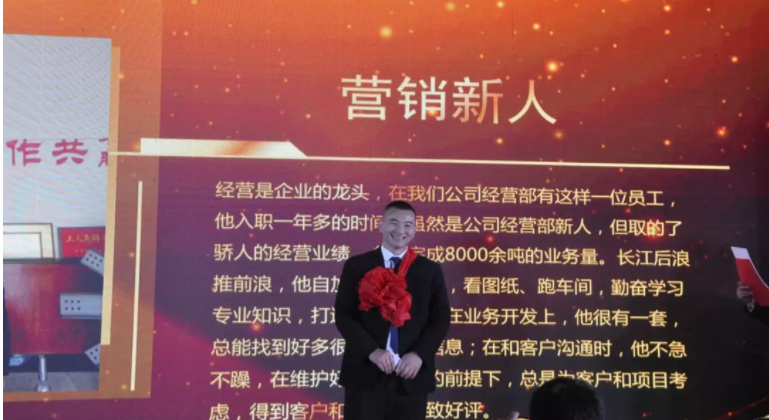 會上公司領導對做出貢獻的的員工作出表彰,并頒發優秀團隊獎、先進個人獎、營銷新人獎、優秀準確率獎、優秀黨員獎、車間管理先進個人獎。