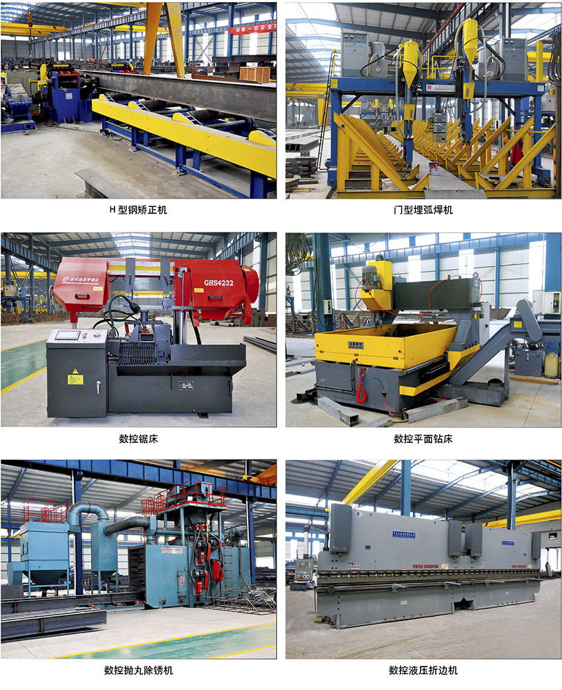 公司設備先進,采用先進的數控技術,自動化速度高,鋼結構生產區擁有數控多頭直條氣割機、數控鉆床、H型鋼自動焊接生產線、全自動組力生產線、門式自動焊生產線,拋丸除銹生產線以及探傷檢測等國內先進設備。擁有與建筑幕墻制作安裝配套的丁基膠涂布機,雙組份打膠機,玻璃磨邊機、中空玻璃鋼化機以及韋氏硬度鉗、氧化膜測厚儀、水平儀等專業幕墻生產加工設備和質量檢測設備。